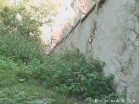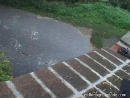Зрелый эксгибиционист завел молоденькую короткостриженную подружку, с которой специально встретился чтобы вместе потрахаться над проходящими под ними людьми, ведь они собираются это сделать на крыше, то есть совсем публично. Прохожие осуждающе смотрят на извращенцев, но никто ничего не высказывает мужчине и его не менее извращенной пассии в чулках, находящейся на крыше абсолютно голой. В какой-то момент послышалась приближающаяся полицейская сирена, из-за которой мужик насторожился, но, к его счастью, это не за эксгибиционистами. Обычно девушек трахают через разорванные штаны, но в этот раз не хватает ткани на джинсах дяди.