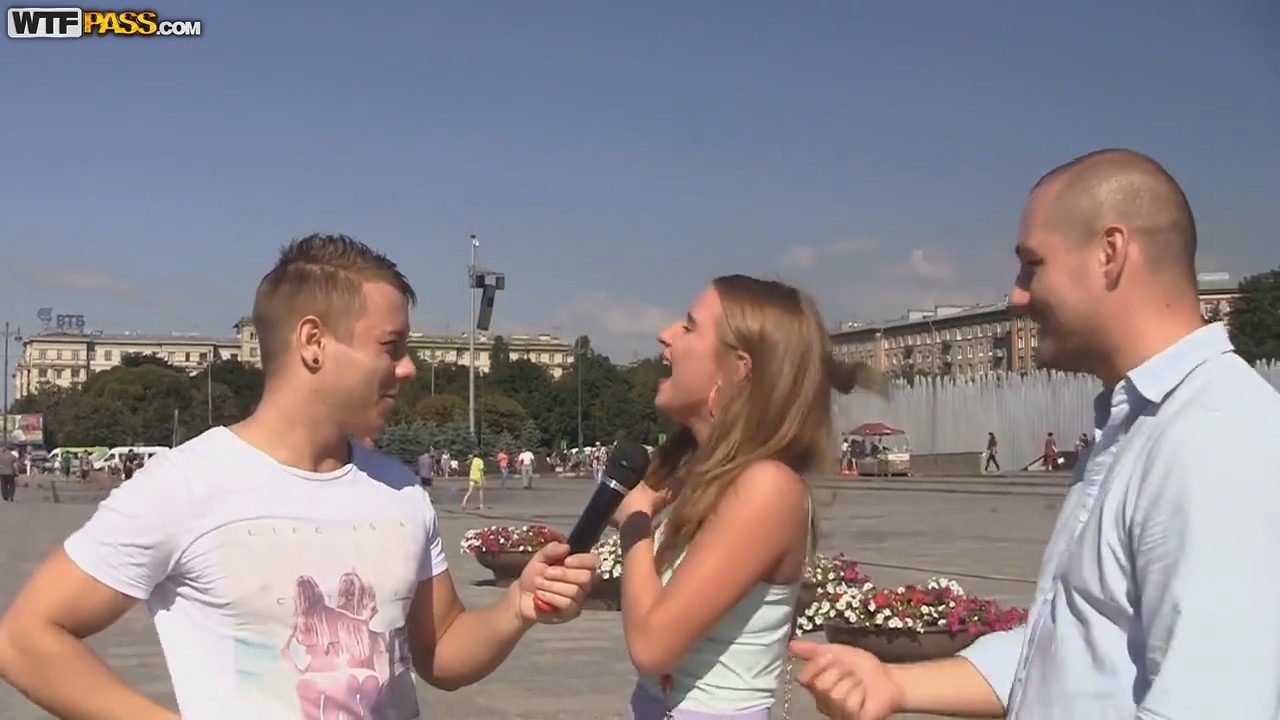 Опять пацаны из Питера пытаются привлечь внимание прохожих женщин и девушек, прикидываясь репортерами. По разговору всем сразу становится ясно, что никакие они не репортеры, а обычные сопляки, ищущие легкодоступную блядь, согласившуюся проехать с ними куда угодно. И знаете что? Такая нашлась. Она дала расширенные комментарии, сев в чужую машину и уехав заниматься анальной групповухой на природу в незнакомый лес. Иногда таким видим в сводке негативный новостей по телевидению. Но понятно, что якобы незнакомка на самом деле подобранная актриса, начавшая карьеру со взрослых фильмов.
