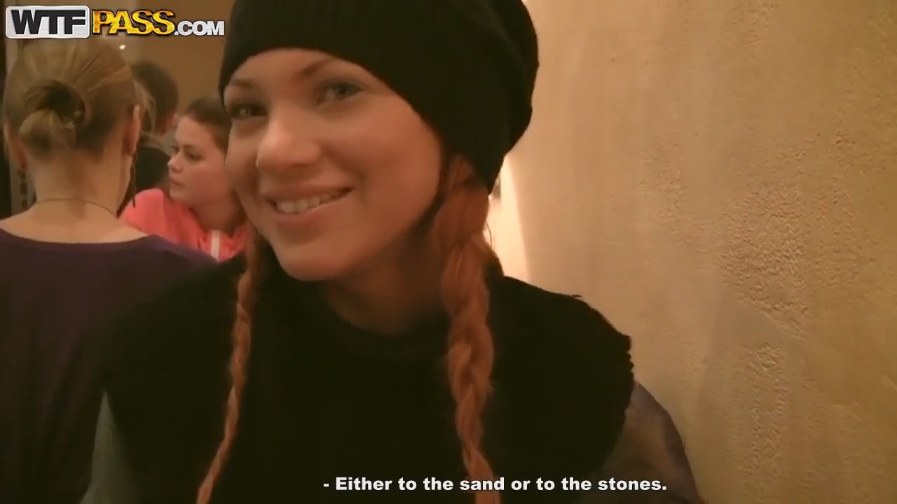 Теплая зима, поэтому прохожие такие радостные и общительные, особенно две девушки, к которым подошли парни с камерой. Они обратили внимание на великолепную попку одной из них, облаченную в леггинсы, совсем не предназначенные для данного времени года. Она даже ответила "да", когда ей предложили секс, но подруга быстренько увела общительную спутницу. Следующая пара девчонок тоже остановилась дать интервью, но дальше дело не зашло, поэтому поиск слабой на передок продолжился. На углу дома по Невскому проспекту стояла еще жертва, явно кого-то ожидавшая. Себя она сперва назвала себя Тина, но вскоре в кафе, куда пригласили рыженькую красотку, назвала настоящее имя. Маша, как Маша и медведи, легка на общение и согласилась рассказать о своем парне с интимными подробностями. Далее было предложение денег за показ сисек и последующее продолжение за более крупную сумму, которую телочка не отвергла, пройдя с малознакомыми друзьями в туалет забегаловки. На удивление, в этот раз все выглядит крайне качественно и ненаигранно.