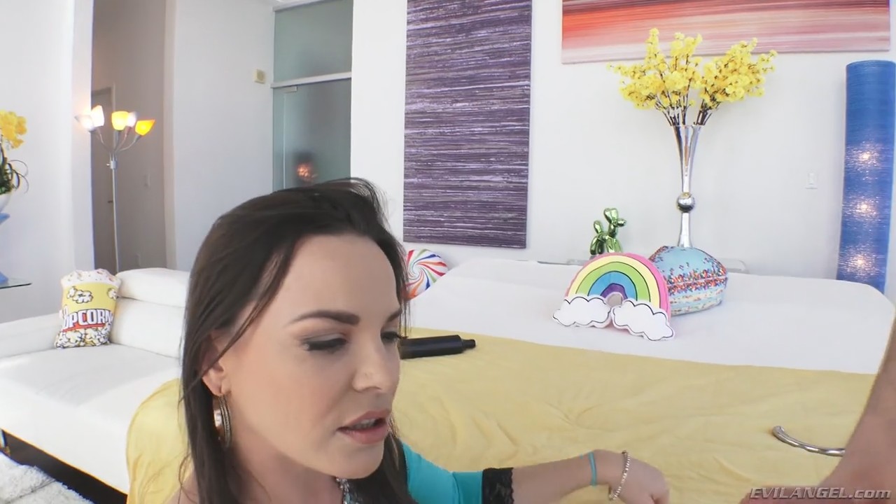 Сразу после короткого интервью милф приступила к делу, разминая большую жопку смазанным металлическим крюком. Ох, как это заводит ебаря, снимающего с руки великолепную дырку, растянувшуюся под размер игрушки. Его член напрягся еще за кадром, поэтому POV-эксперт поторопился поскорее дать в ротик горячей темноволосой сучке. Давится та знатно, выпуская стаканы слюны и продолжая дальше щекотать глоткой головку. Пока милочка сосала, ее попочка расслабилась, пришлось вновь применить ранее использованный крюк. Теперь толстый ствол заменил хромированную игруху, дав обоим актерам кайфануть по-полной. Естественно, не обошлось без большого количества смазки, камень в огород осточертевшего подонка.