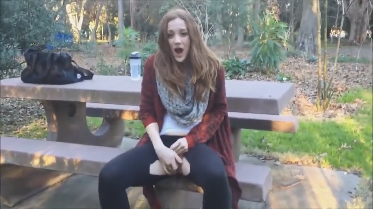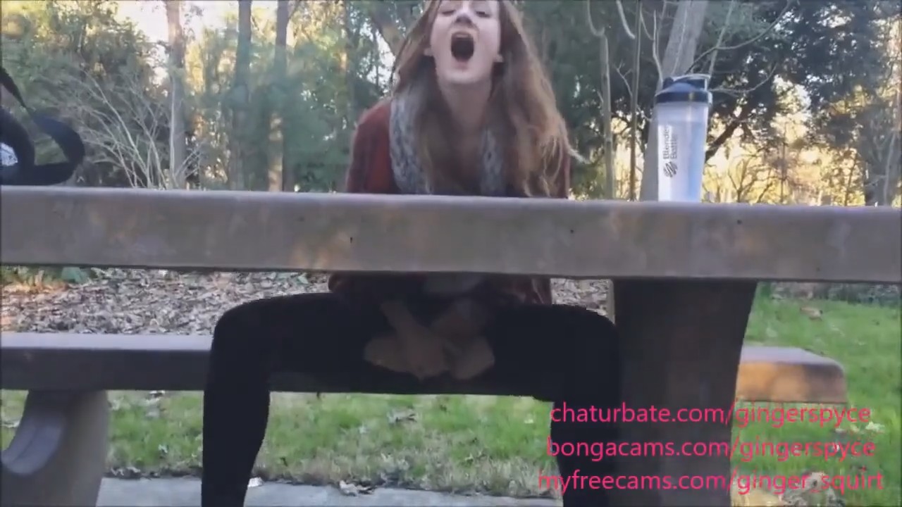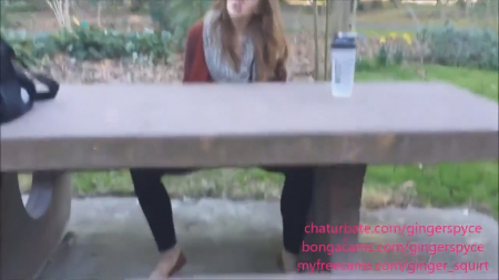 Холодная осенняя погода, повылазили онанистки и прочие извращенки. Одну из таких могли видеть счастливчики, гулявшие по общественному парку, в котором расставлены лавочки со столами для возможности передохнуть. Девушка спрятала ноги под стол и разорвала тонкие леггинсы, начав мастурбировать. Ее заводит легкий эксгибиционизм, когда кто-либо может случайно спалить мастурбирующую незнакомку. Снимает на камеру приятель, являющийся заодно охранником и личным телохранителем, ведь может попасться извращенец, насильник и прочий криминальный элемент. Сученька буквально через пару минут полила травку сквиртом, а после отправилась домой с разорванными штанишками.