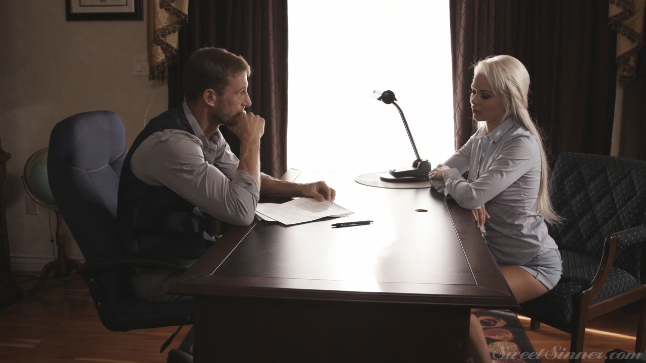 Неожиданным открытием для молодой девушки стало то, что ей очень стал нравиться зрелый преподаватель в университете. Это стали замечать и другие, попытавшиеся на педсовете решить данную проблему, не исключать же девушку просто так. Разговор состоялся и с директором, но это ни к чему не привело. Однажды вечером блондинка осталась один на один с объектом обожания. Ноги сами собой раздвинулись под столом, показав игривые трусики. "Я знаю чего вы хотите! А я не знаю чего я хочу" - обменялись фразами студентка и учитель, после чего маленькая потаскушка поцеловала дядю и отдалась ему на столе в классе.