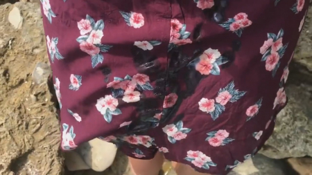 Отличная погода чтобы насладиться свежим воздухом, позагорать, пообщаться с другими людьми. Но эта парочка извращенцев здесь совсем для другого. Как всегда, камера у них с собой и на флешке достаточно места чтобы записать очередной секс влюбленных и тела извращуг. Парень приспустил шорты, а спутница стала наяривать член рукой и сосать, после чего встала, приподняла низ своих тоненьких шортиков и приняла глубоко в вагину. Совсем рядом отдыхают другие горожане, точно видевшие занимающихся сексом любовников в людном месте, чуть спрятавшись за скальную породу. Так со спермой на одежде и прошла мимо них молоденькая сучка.