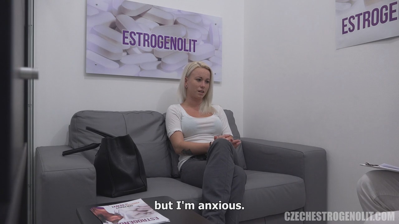 Ноунейм блондинка пришла по объявлению, в котором предлагались немалые деньги за помощь в проведении клинических испытаний каких-то неизвестных интернету таблеток. Называются они эстрогенолит и нужно подписать кучу бумаг и страховых полисов, дабы обезопасить обе стороны от плачевных потерь. Проглотив всего одну, уже через несколько минут мощнейший эффект захватил тело гостьи коморки. Сама не замечая, героиня начала гладить волосы, ласкать тело, а потом вовсе разделать и начала умолять ее трахнуть, с таким сексуальным влечением первый раз трудно справиться. В конце пациентка поделилась мнением о действии пилюли и похвалила себя за получение интересного опыта.