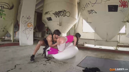 Одному знакомому некая девушка отправила геолокацию, предложив встретиться в необычном месте. Он незамедлительно приехал и обнаружил внутри заброшенного производства подругу с прикрытыми маской для сна глазами, а также прикованной цепью к шее. Чувак не растерялся и сходу зарядил шлюшке за щеку, грубо заставив сосать твердый как камень член. Брюнетка беспрекословно выполняла все требования, возбуждаясь сильнее от шлепков по телу и лицу. Облитая маслом и с разорванными штанами молодуха получила крутой трах, проглотив сперму не успевшего подняться и застрелить в рот ебаря, похваставшись проглоченными выделениями яиц.