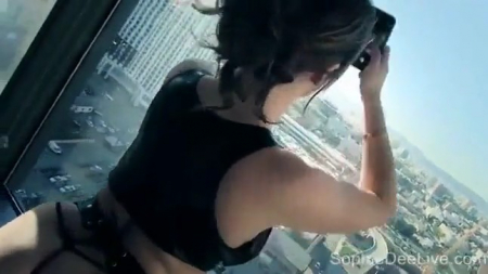 Sophie Dee - очаровательная прелестница, которая просто не может насладиться видом своей сочной задницы. Девушка буквально не отрывает взгляда от своего суперского бампера. Ведь сначала дамочка фотографирует аппетитную попку на телефон, а потом шевелит булками и любуется этим рядом с зеркалом.