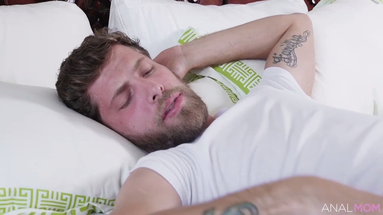 Любящая жена очень обрадовалась уходу на работу супруга. Убедившись, что он точно свалил, женщина вприпрыжку отправилась в ванную, где поставила перед собой камеру и начала диалог о своих домашний приключениях как домохозяйки. Каждое утро по ее словам она ходит с маленькой игрушкой в заднице, а муж не знает, так как почти не пристает. Продолжила героиня мастурбацией прямо тут в ванной, но так громко, что это услышал пасынок через весь громадный дом. Пойдя на приятный звук, он обнаружил мамашу, дрочившую голой, а та, вместо того, чтобы прекратить, потянула за футболку сорванца и перепихнулась в ранее подготовленное очко на холодном полу и ванне.