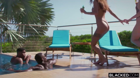 Бисексуальные подружки отправились покорять жарких мальчиков на курорте. Самым крутыми оказались чернокожие ребята - местные, прожигающую жизнь с цыпочками вроде этих. Они русские, а значит почти по-умолчанию мордочки их симпатичные, а еще точеные фигурки, что у рыженькой, что у брюнеточки. Мальчики вылезли из бассейна и пригласили милочек поебаться, те конечно согласились, ведь парни мясистые, с большими как набалдашник членами, в общем, все при них. Красоткам Кристине и Юлии так понравилось смотреть друг на друга, повторять действия, их возбудило вместе сосать в обратной позе и получать вместе кончи на лицо.