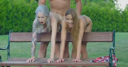 По миру прокатилась волна истерии. Протесты, ограбления и убийства - именно такие вещи сопровождаются беспорядками в западных странах. Кто-то бросает работу ради лутинга, кто-то получает шальную пулю от протестующих, а такие как эти двое принимают ситуацию иронично, записывая пародийный ролик для социальных сетей. По задумке здесь якобы короткостриженная, почти лысая, фемка на ночной улице решила показать как черные жизни важны, хотя больше похоже на "черные члены важны". Она сняла штаны перед стояком афроамериканца, сидящего на лавочке и насадилась на лавочке. Позже любовники немного сместились в сторону ограждения возле воды, где очкастая получила глоток свежей спермы.