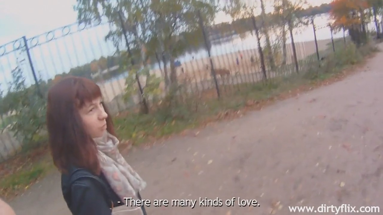 Пикапер заприметил девушку с прямой челкой, к которой поспешил присоединиться в прогулке. Она не против поговорить и немного опешила, когда незнакомец назвал ее имя - Анастасия (хотя в субтитрах для зарубежного пользователя перевели как Даша). Негодяй запугал страшными историями про этот парк, где гибнут люди, прямо в этой воде, дав почитать какую-то газету. Заговорив зубы, он отвел идущую с работы девушку в чуть менее людное место парка на Озерках и трахнул для прерывания круга несчастных случаев. И последнее что нужно сделать для ритуала - взять любой предмет и выкинуть его в озеро. Такой бред было тяжело прослушать, особенно с не самой хорошей экшн-камеры.