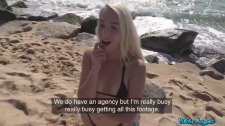 Чувак с квадрокоптером пошел искать на пляж какую-нибудь телку, за которой можно пошпионить. Она быстро нашлась, одиноко загорая на песчаном берегу подальше от людей. Увидев приближающуюся летную технику, она подскочила, показывая руками в сторону, чтобы неопознанный объект улетел, а когда коптер не послушался, пошла искать того, кто им управляет. Зачинщик успел его спрятать и дождаться блондинку дабы пристать с разговором. Девчонка реально странная, ее смутила слежка, но она согласилась перепихнуться под мостом, по которому ходит очень много людей. За деньги, соответственно.