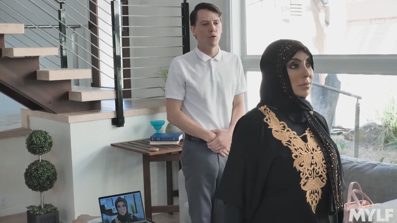 Читая общеизвестную книгу, название которой мы не будем писать, женщина в мусульманской одежде услышала стук в дверь. Приведя себя в порядок она впустила компьютерного мастера, бравшего на дом работу по восстановлению удаленных фотографий и видео с ноутбука. Продемонстрировав выполненную работу, он попросил оплату, а пока дама искала наличку в кошельке, ее взгляд упал на пах молодого человека. Мастер и так знает о нечестивости клиентки, так как все видел воочию, а ей ничего не стоит раздеться и дать ему за качественную работу, не снимая покрытия с головы. Здесь она первый раз смотрит мужчине в глаза. Естественно, это проходная порно актриса и к религии она не имеет никакого отношения.
