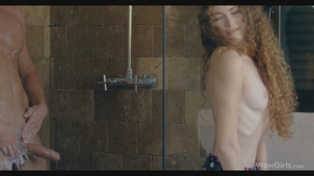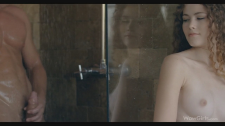 Скупая на эмоции юная девица услышала шум воды из ванной комнаты. Это милый вернулся после работы и теперь пытается избавиться от неприятных запахов автомастерской. Подружка встала напротив и начала раздеваться, возбуждаясь от того, что подкаченный парень начал мастурбировать на нее, глядя через стеклянную дверцу кабинки. Моложавая отложила свое желание на ночь, а сейчас она сделала минет, чтобы потом у него было меньше шансов быстро кончить в постели. Он было чуть не спустил в ротик, но вовремя взял пенис в свою руку и эякулировал на малюсенькую грудь кучерявой, оставшейся помыться под душем.