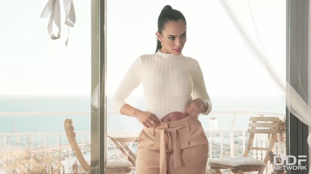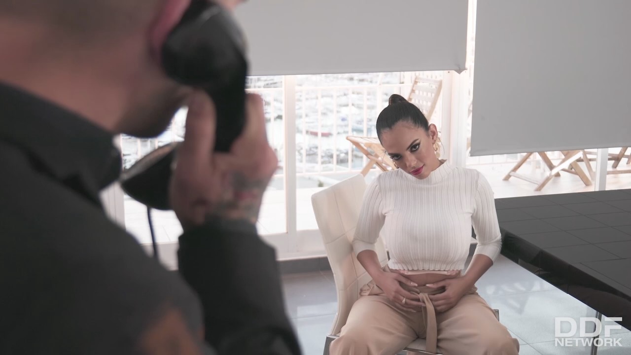 Латинка собралась прошвырнуться с любимым по магазинам и заглянуть в кафешку, так как завтрак она не готовила. Одевшись в уличную одежду и спустившись по лестнице, она вновь расстроилась, так как любимый отвернулся при разговоре по телефону чтобы не отвлекаться на симпатичную жену, требующую особого внимания. Но когда та стянула с него брюки и начала сосать, деловой разговор стало сложно вести и пришлось положить трубку чтобы насладиться ротиком и пихом между больших грудей. Знойная брюнетка осталась в одних трусиках, ведь дырочка ей сейчас не понадобится, а вот сиськи - да.