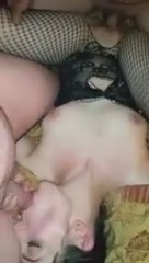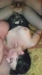 Темную шалаву в эро костюме снимает муженек. Вокруг его любимой находятся двое мужчин, дающих пососать головки, а чернявая их с превеликим удовольствием облизывает. Наконец один сообразил присунуть бабе, второму же сексвайф продолжила делать минет. Потенциал группового секса начал раскрываться, когда шлюшка стала прерывисто стонать ровно под тот темп, при котором ее ебут. Ребята кончили практически синхронно - один спустил на открытый рот, второй выдрочил семени на животик. С одним партнером она не получает такого удовольствия.