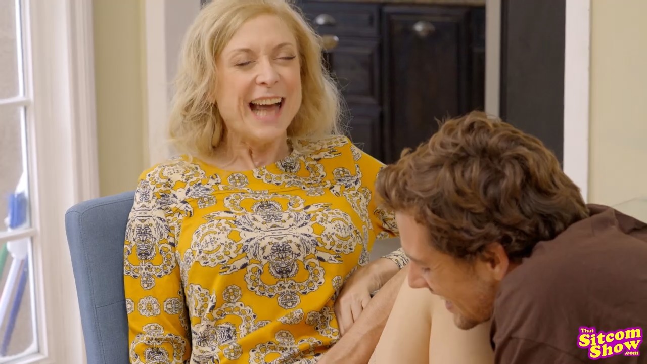 Попробуем разобраться что происходит в этом эпизоде порезанной на несколько частей ситуационной комедии. Товарищ сына пришел в гости, но самого парня не было дома, только его батя и маман, решившая угостить вкусными печеньями. Молодой предложил сделать массаж ножек старой шлюхе 70-ых, постепенно перебираясь к варенику. Она так много болтает и мало соображает, что не обратила внимание как член пацана оказался внутри. Вот так подстава, еще и появившийся сынок испортил печеньки - ебарь кончил прямо в тарелку. Ну говорила же - любит с молочком, вот и оно. В тупой бошке как будто щелкнуло "что это происходит, я же замужняя женщина".