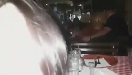 Веселая бабца удивила бойфренда неожиданной выходкой. Пара пришла покушать в шумную кафешку, где за соседним столом корпоратив развлекает мексиканец на гитаре. Брюнетка мило вытащила хуй приятеля из штанов и начала ему сосать, попутно отдрачивая рукой под столом. Обожранный соседний столик всего в нескольких метрах, но никто не спалил ныряющую под скатерть голову. На всякий случай еще и рукой прикрыто.