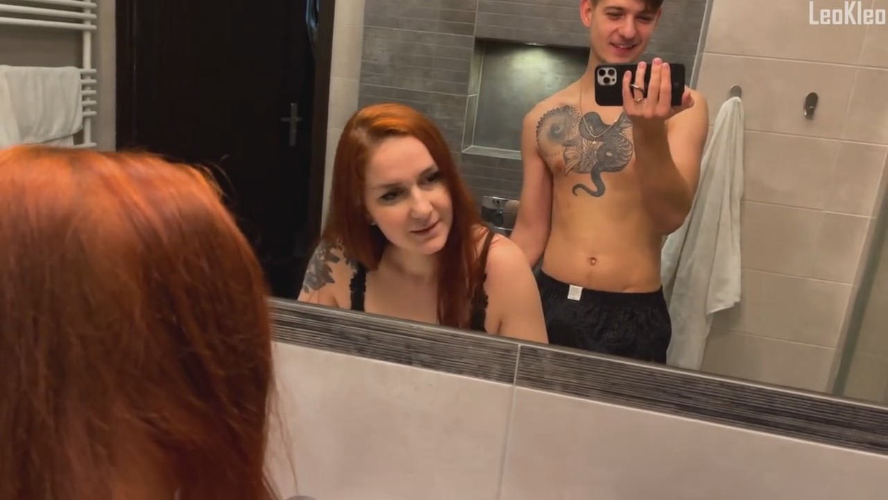 Рыжая девушка совсем не готова к выходу. Пара уже опаздывает на час, а она все красится. Молодому человеку тоже торопиться не хочется, потому он включил камеру на телефоне и предложил задержаться еще на 15 минут, которые ничего не решают. Одновременно с этими словами он засунул пальцы подруге в трусики, озвучив степень влажности внутри. После несколько движений в киске, он увидел как любимая прикрыла глаза от удовольствия и еще больше кайфанула когда тот вставил свой хер. Получилось меньше обещанных пятнадцати минут, зато как он хорошо залил личико спермой.
