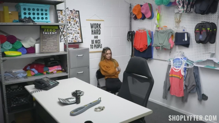 Охранник заметил по камерам наблюдения как покупательница ворует дорогие часы и пытается покинуть с ними магазин. Девушку задержали, отвели в подсобку, попросив подождать приезда отца. Довольно долго пришлось томиться в одиночестве, не сознаваясь в наглой краже. Появился отчим, который якобы совсем не понимает за что задержали его любимую дочурку, но когда охранник отошел на несколько метров, попытался скинуть украденное к нему в ящик, за чем и был пойман. Извинения тут вовсе не помогут, а улететь можно на длительный срок за косяки. Бдительный мужчина решил проверить нет ли краденного внутри малышки, потому попросил раздеться и просто терпеть, пока он ковыряется в дырочке молоденькой дряни. Батяня на первых порах возмущался, но придумал, по его мнению, гениальный план - если они вместе с охранником выебут девочку в подсобном помещении, то никакой ответственности за содеянное нести не придется. После траха на столе они оба накончали друг после друга в киску.