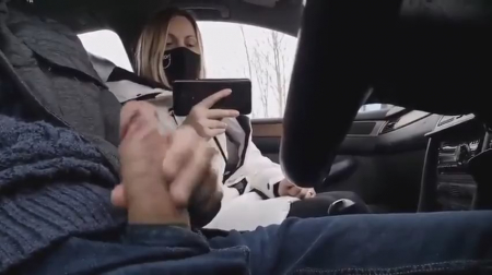 Обычная посадка пассажира во многоразовой маске на лице в кресло рядом с водителем. По пути он за несколько заходов достал свой член из джинс и начал дрочить. Как известно, угол обзора у девушек немного больше, чем у мужчин, так что боковым зрением увидела как наяривает свой пенис таксист. Первым делом клиентка достала телефон и стала как бы незаметно ее снимать, не догадываясь, что и сама стала объектом съемки камеры в углу автомобиля. На перекрестке со светофором она взяла рукой пенис и стала сама дергать его, а мужчина поднес свой телефон из двери поближе заснять самый ответственный момент.