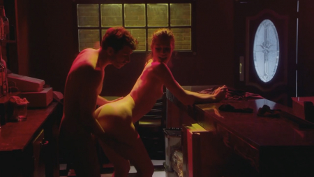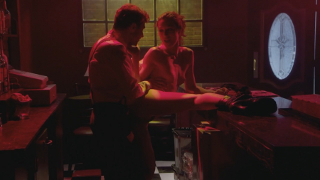 Бармен натирал последние стаканы - завтра еще одна смена, но его любимая не может так долго ждать его возвращения домой. Красотка в коротких шортиках жарко поцеловала парня, заставив отойти на метр и вытащить успевший эрегироваться член. Приняв его в ротик под красно-желтыми огнями, малышка встала повернувшись небольшой попкой. Незамедлительно, но очень туго туда воткнули член. На фоне играет забавная музыка, обстановка симпатичная, а девушка стонет от удовольствия, но этого не слышно. Киске тоже повезло, ее трогала сперва сама хозяйка, потом бармен, облокотивший фигуристую о стойку.