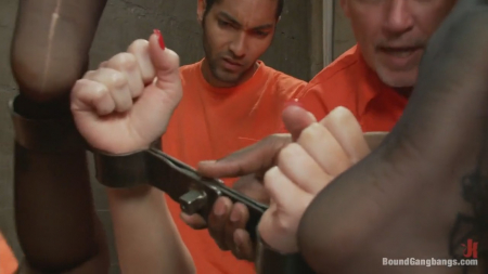 Сексуальная надзирательница дразнила заключенных постоянно одеваясь в обтягивающие сексуальную фигуру вещи. Но в один из прекрасных дней девушка была наказана. Дело в том, что когда блондинка проходила мимо камеры, случайно уронила ключ. Конечно же заключенные воспользовались таким шансом и пустили надзирательницу по кругу.