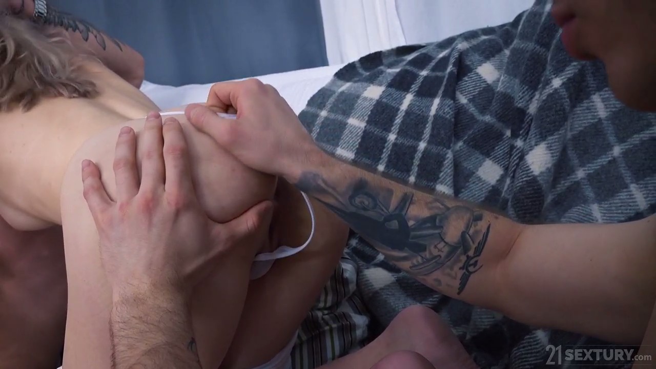 Похожее на все остальное порно серии 21Sextury рассказывает нам о молодой девушке, в гостях которой постоянно трется два человека. Они оба ее любовники и даже когда та занимается учебой, ребята хотят заниматься любовью. Им почти сразу удалось уговорить отложить тетрадку и подойти. Нежно, через поцелуй раздев телочку, оба принялись давать зумерке в рот, но совсем недолго, интересным стало когда они стали лизать обе дырочки, чуть ли не касаясь по-гейски языков друг друга. Начался секс простенько - один не захотел вытаскивать пенис изо рта подружки, второй усердно долбил в пилотку, потом они поменялись местами и, проверив пальцем, что попка готова, отдолбили чикулю двойным трахом. Плохое влияние, но такое приятное!