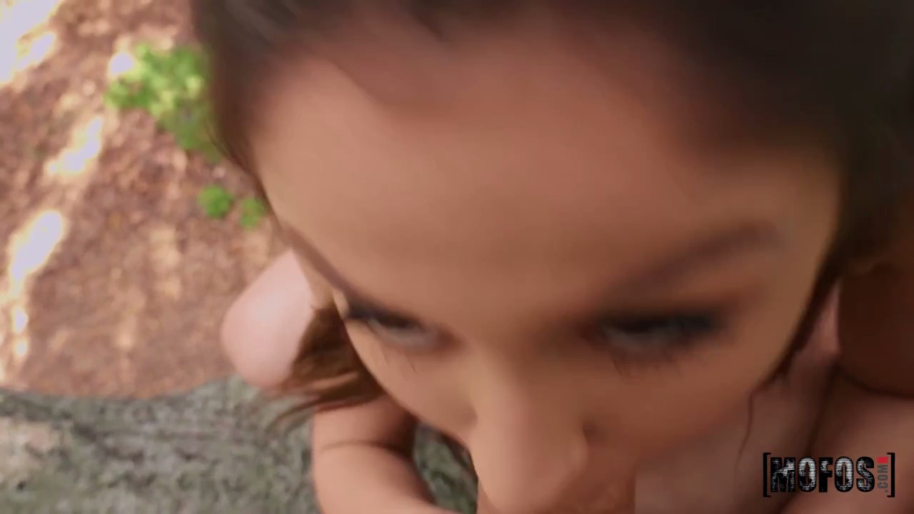 Прогуливающийся по лесопарку мужчина заприметил сидящую на дереве симпатичную девчушку. Она все время просила говорить потише, ведь она прячется от парня в синей кофте - это ее бывший кавалер, который уже достал. Когда тот подошел поинтересоваться у нашего героя не видел ли он девушку в коротких шортах и топе, тот сорвал якобы она прошла мимо этого дерева и спустилась ниже. Девушка попросила забраться к ней, если незнакомец хочет знать почему она тут прячется. С трудом забравшись повыше, прохожий выслушал историю про бывшего, взамен за тишину получив прямо здесь минет, а когда экс-бойфренд точно ушел, латинка из Колумбии дала ему возле камней на земле.
