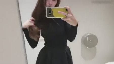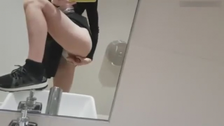Как только наступил вечер, некая девушка с телефоном прогулялась в белоснежный туалет заведения. Магазин это, забегаловка, ТЦ или еще какое место, нам не известно. Тут очень чисто, даже снять трусики и кинуть их куда-нибудь - дело не страшное. Малышка с телефоном в руке, который снимает отражение в зеркале, просунула руку в трусики, обнаружив там достаточно влажную писечку, которую поспешила приласкать. С собой у нее есть фаллоимитатор в сумочке, сумевший помочь получить удовольствие. Красочно закинув ногу на столешницу раковины, брюнетка помастурбировала немного, а шумящая вытяжка заглушила все исходящие посторонние звуки.