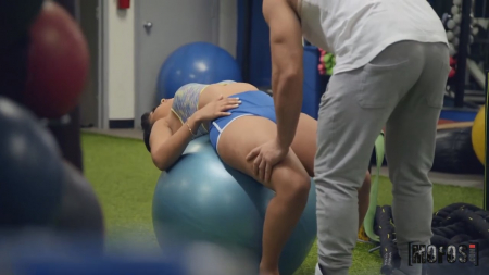 Собираясь домой, посетитель спортзала обратил внимание на тренировку мечтающей похудеть девушки и персонального тренера, который при каждой удобной возможности пытается соприкоснуться с ее задницей членом, а потом и вовсе обливает водой из бутылки. Сделано это все явно специально, не первый раз разводит пухляшек на поебаться, только обычно без свидетелей. Через несколько минут пряток за тренажерами вуайеристу удалось запечатлеть как они трахаются. Смелости также хватило подойти вплотную и поинтересоваться, намеренно ли тренер соблазнял клиентку. Любовники были не против лишних глаз.