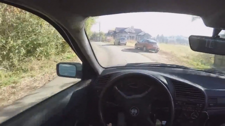 Веселый чувак просто едет по своим делам и замечает идущую по обочине девушку. На дворе уже давно не лето, а та легко одета. Надо бы ей помочь! Настойчивый водитель стал всячески зазывать ее к себе, обещая, что внутри ей будет намного теплее, рассказывает о безопасной поездке домой. Очкастая чикуля повелась и уже через пару минут езды, он начал вместе ручки автоматической коробки передач класть ладонь на ножку с игривыми чулочками сверху. Телочка залепетала про своего бойфренда, а вообще странно: не повелась на известную марку автомобиля самостоятельно, еще уламывать пришлось, но недолго. Любовники забрались на заднее сидение бэхи, где в не самой удобной позе очкарик раздвинула ноги, если так можно сказать, перед незнакомцем.