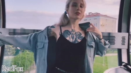 Озабоченная Алена вместе со своим близким другом пришла поглазеть на город с колеса обозрения. Татуированная девка сразу показала пирсингованные соски, оглядываясь по сторонам и приползла делать то, зачем вообще эта парочка сюда пришла - для минета в прозрачной кабинке. Вся прелесть в том, что кто-нибудь с улицы может увидеть чем занимается светленькая шлюшка со своим парнем, это добавляет изюминки в ситуацию. После отсоса крупным планом она показывает напряженный язычок со спермой, которая была моментально проглочена. Малышка с двумя хвостиками еще немного пососала, повторно показала сиськи и на этом все закончилось.