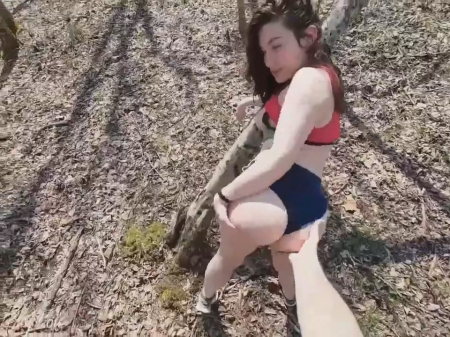 Начинаются солнечные деньки, а значит молодые и не очень люди отправляются отдыхать на природу. Пышная симпатяга подтянула шорты наверх так, что стало видно ягодицы снизу и щеголяет попкой перед бойфрендом, который следует с камерой сзади. Они пошли ненадолго в глубь леса, чтобы заняться чем-нибудь интересненьким наедине, например, поебаться стоя у деревьев. Чикуля вытащила хер приятеля, пососала его и повернулась задом. Узкая вагина достаточно быстро заставила кончить парнишку, а хозяйка этой дырочки даже не стала ничем подтираться, просто надела обратно свои шортики с трусами.