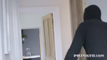 Дурная голова не дает блондинке покоя, которая придумала залезть в частный дом бывшего парня, чтобы там сделать на его кровати несколько фоток, может быть еще чего-нибудь у него своровать из ящиков. Только полуголая девица с красивыми глазами сделала фотографию, послышался шум, будто кто-то что-то уронил в другой комнате. Испугавшаяся раннего возвращения бывшего мужика с работы, она побежала прятаться, но ее нашел другой вор в балаклаве, который толкнул незнакомку на кровать, взял ее телефон чтобы посмотреть не вызывает ли она копов, обнаружил там ее себяшки и, поняв ситуацию без слов, сделал фотку своего висящего здорового негритянского члена, тем самым помогая мстить богатому засранцу, записав их секс на видео. Там и сам хозяин подоспел после кончины черного в рот его недавней телке.