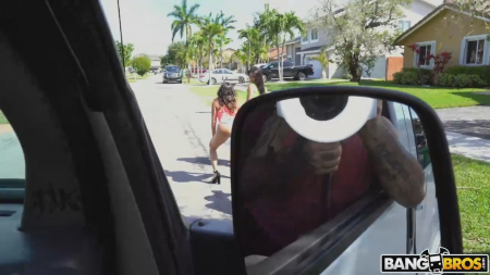 Далеко не каждый откажется поглазеть на большие сиськи известной в порно кругах женщины. Сегодня она вернулась в LA доказать, что во всей округе лучше нее нет, но она забывает про молодых претенденток на место, которых встретили добрые путники на фургоне. Первый незнакомец согласился поучаствовать, но трахать озабоченную не стал, зато двое других ребят с удовольствием отоварили вагинальную дырочку самки человека. Это совсем разные парни: один высокий американец, второй будто совсем недавно крутил кебаб возле стройки. Все остались довольны и новая надпись на крыше автомобиля подтвердила конец съемок.