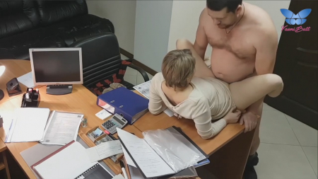 Короткостриженная коротышка на каблучках закрыла дверь в кабинет, заперевшись внутри с коллегой или может быть даже начальником. Нередкое явление когда девушки спят с высшими по рангу в цепи работы вечерком. Сперва россиянка успешно отсосала, после чего закинула одну ногу на стол, выставив мягкую попку для любовника. Сверху это снимает офисная камера, к которой у них есть доступ, чтобы дальше слить запись в интернет. Опосля работница перевернулась кверху пузом, уронив важные бумаги на стол. В такой позе ебырь обкончал ее лобок. Вот теперь можно отправляться домой.