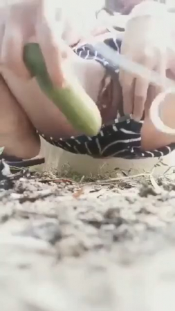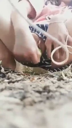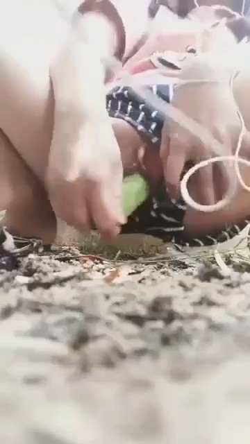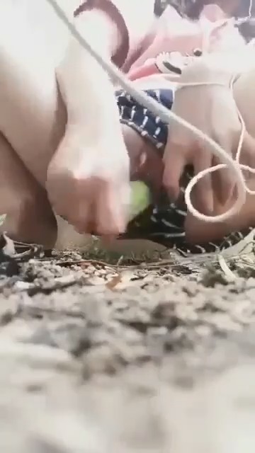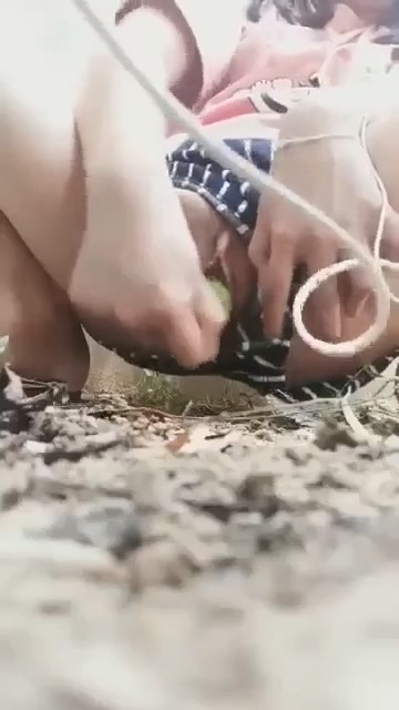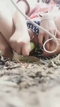 Хорошая девочка в шортиках-трусиках спряталась от соседей за забором, включив стоны на телефоне и воткнув наушники. В руке у азиатки огурец - незаменимый товарищ для женской мастурбации. Им она быстро-быстро потрахала пизденочку, будто хлопающую в ладоши половыми губами. Всего минуту выдержала киска дрочки овощем, после чего оттуда закапало на землю. Так как уличная онанистка не показывала лицо, своими достижениями она сама поделилась с интернетом.