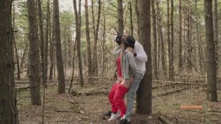 Лесные грибы трахаются стоя возле деревьев