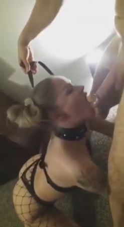 Озабоченный хозяин телочки не упускает из руки ошейник. Это для того, чтобы когда униженная подружка переставала заглатывать до яиц, подтягивать потаскуху к себе, заставляя и дальше давиться вкусной хуятиной, а чтобы она не расслаблялась, мужчина складывает на спину ноги, так личная шлюха не забывает выгибать спинку, чтобы попку было лучше видно. Сосет старательно, с прилагающимися звуками гортани, насколько их может записать смартфон.