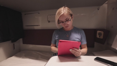 Узнав, что девушке напротив ехать достаточно далеко и увидев, что ей очень жарко, парень достал член и начал на нее мастурбировать, не сильно пытаясь спрятать дрочило под столик. Она резко возбудилась, провела по киске через штаны и подумала будто ей показалось, но нет, он действительно наяривал на симпатичную незнакомку в очках. Долго после этого время не тянули - блондинка с короткой прической растянулась со своего места, начав отсасывать молодому человеку, потом забралась на верхние места и показала во всю красу свою дырочку, которую наконец-то удовлетворили, пусть и прямо в отечественном поезде купе.