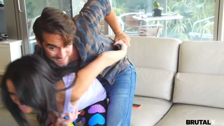 Симпотная девушка поговорила по телефону и схватилась за пульт, чтобы посмотреть телевизор. Появился братик, поставивший некоторое количество денег на любимую команду и сейчас ему действительно необходимо за них поболеть, но сестра всеми способами не давала посмотреть игру, прикрывая экран своим телом. Кроме этого шкодница показала ему переписку с парнем, который ее трахал вчера, что вызвало сильнейшую ревность парня, решившего отомстить за испорченное настроение. Он разорвал штаны красотки и трахнул ее как следует, ведь не может какой-то чувак ебать ее лучше, чем он сам!