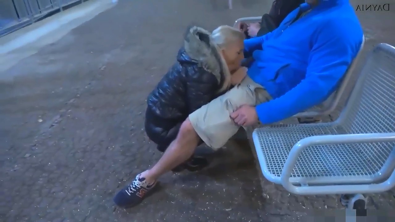 Не боящаяся ночных приключений немецкая потаскуха отправилась на поиски с кем поебаться в такое позднее время. Обычно на вокзалах сидят мужики и ждут свой поезд, вот и в этот раз попалось сразу двое друзей на платформе. Чикуля села между них, до этого постояв какое-то время, чтобы они оценили обтягивающие штанишки незнакомки, после чего начала гладить их ноги, непрозрачно намекая на продолжение. Так как лавочка довольно холодная и вообще лучше не раздеваться, дабы не застудить кормилицу, баба приспустила с жопы штаны, призагнувшись рачком, пока второй давал спереди в рот. Оба ночных приятеля обкончали ебасос шалавы, а та пошла в таком виде дальше, ехать ей никуда не нужно.