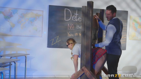 Милка в очках щеголяла по коридору школы браззерс с анальной пробкой внутри. Это не мог не заметить самый строгий из учителей, который привел подопечную в свой класс и показал что написано у него на доске. Затычки не разрешены! Поэтому нерадивую дурочку в красной короткой юбке придется наказать, заковав ее в колоду для фиксации. Мужчина обошел спереди и пристроился к голове, надавав той в ротик. Пока она стояла не очень удобно загнувшись, ее отымели сзади, после чего расфиксировали и уже просто трахали в молоденькую попку на маленьком столике класса, завершив наказание вкусом спермы на языке.