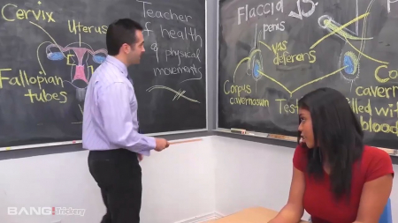 Негро-китайскую симпатягу оставили после школы, чтобы она вместе со своим классным руководителем немного позанималась по последней, самой важной теме - биологии человека. Они проходили женскую и мужскую репродуктивные системы и, чтобы она смогла дальше гонять мяч за школу, придется сильно постараться перед экзаменом, а чтобы ускорить процесс, преподаватель предложил показать все на личном примере - так его подопечная побыстрее узнает что такое здоровые половые отношения, заодно он ее научит доставлять удовольствие парню и получать его самой. Он даже кончил внутрь как это делают когда хотят завести детей.