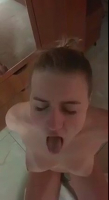 В уютной любительской обстановке молодой парень стоит перед зеркалом шкафа в коридоре, а его персональная давалка сидит голой на полу и делает ему отсос под камерой мобильника. Она держит на первых секундах руки за спиной, но они так и тянутся потрогать его яйца, прикоснуться к пульсирующей при оргазме плоти. Твердый хуй очень длинный и мысли об этом не покидают неумную голову шлюшки, которой напоминают: руки нужно держать за спиной, но и снова она нарушает указания, открыв рот и немного высунув язык, а получает малафью на хорошенькую мордочку.