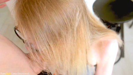 "Лана, чем мы сегодня будем заниматься? - Ну кончено потрахаем меня в попку!" - состоялся разговор двух сожительствующих персонажей из Финляндии. Девушка в очках сразу присела на корточки отсасывать член бойфренда, старательно пропихивая головку в свою глотку. После этого она садится обратно на барный стульчик, а молодой человек перетягивает обычной канцелярской резинкой основание ствола с яйцами, трахая подружку то в киску, то в попку сзади. Получив грязную порцию спермы в анал, чикуля как ни в чем не бывало натягивает обратно супер короткие оранжевые шортики и вертит худой задницей.
