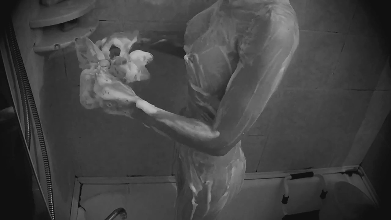 Как девушка с нормальным либидо, наша сегодняшняя героиня заканчивает свою помывку под душем мастурбацией, просто чтобы расслабиться от мирских забот. Она моется стоя, поэтому и ласкать себя будет тоже стоя, а снимает ее черно-белая камера с оттенками серого. Непонятно зачем она висит именно там и кто ее повесил, но и отличненько, зато мы посмотрим как девушка с классной грудью поливает писечку из лейки, а также подрачивает свой клитор пальчиками, держа себя за одну из грудей, отчего ей становится еще приятней.