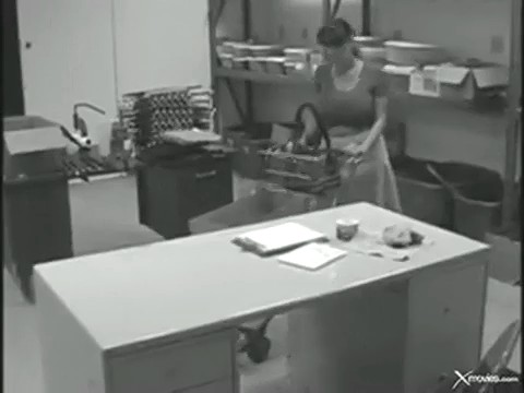Женщина с тележкой нашла незапертую дверь магазина, где находится полупустой склад и не было ни одного работника на месте. Она заперла за собой дверь, села попой на стол с игрушкой и, вывалив наружу здоровенные дойки, принялась трахать свою пизду самотыком, всегда сопровождающим в сумочке на такие случаи. Его она после киски облизывает и даже не подозревает, что это время за ней следила скрытая камера, показавшая развратницу в полный рост, особенно примечательные буфера. А в каком необычном месте дрочили вы?