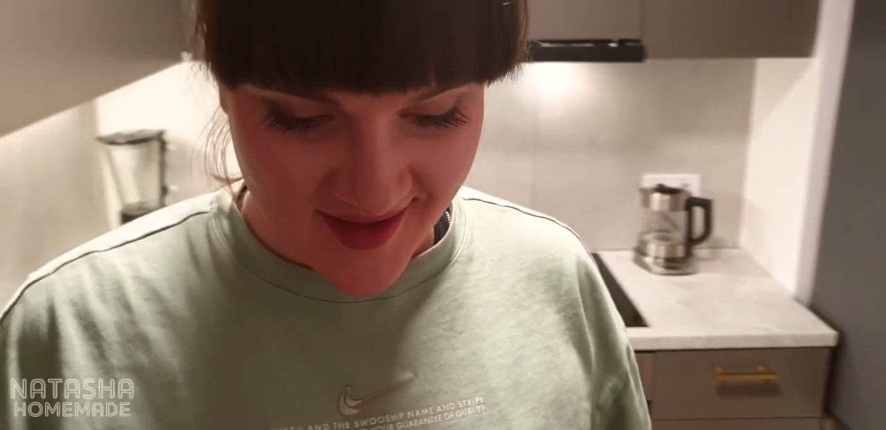 Пышнотелая бабца что-то делала на кухне, когда к ней сзади подошел бойфренд с камерой. Мужчина подманил к себе пальцем толстушку и она сразу поняла, что сейчас придется ему сосать. В ее милой улыбочке читается как она любит это дело и сама, без лишних слов присев на корточки, расстегивает его штаны, чтобы начать уже доставлять ему удовольствие жадным, натренированным ртом. Но на этом их кухонные приключения не закончились, ведь партнер все же немного поебал главную героиню на столешнице и совсем чуть-чуть рачком, после чего со спокойной душой спустил ей первенца за щеку.