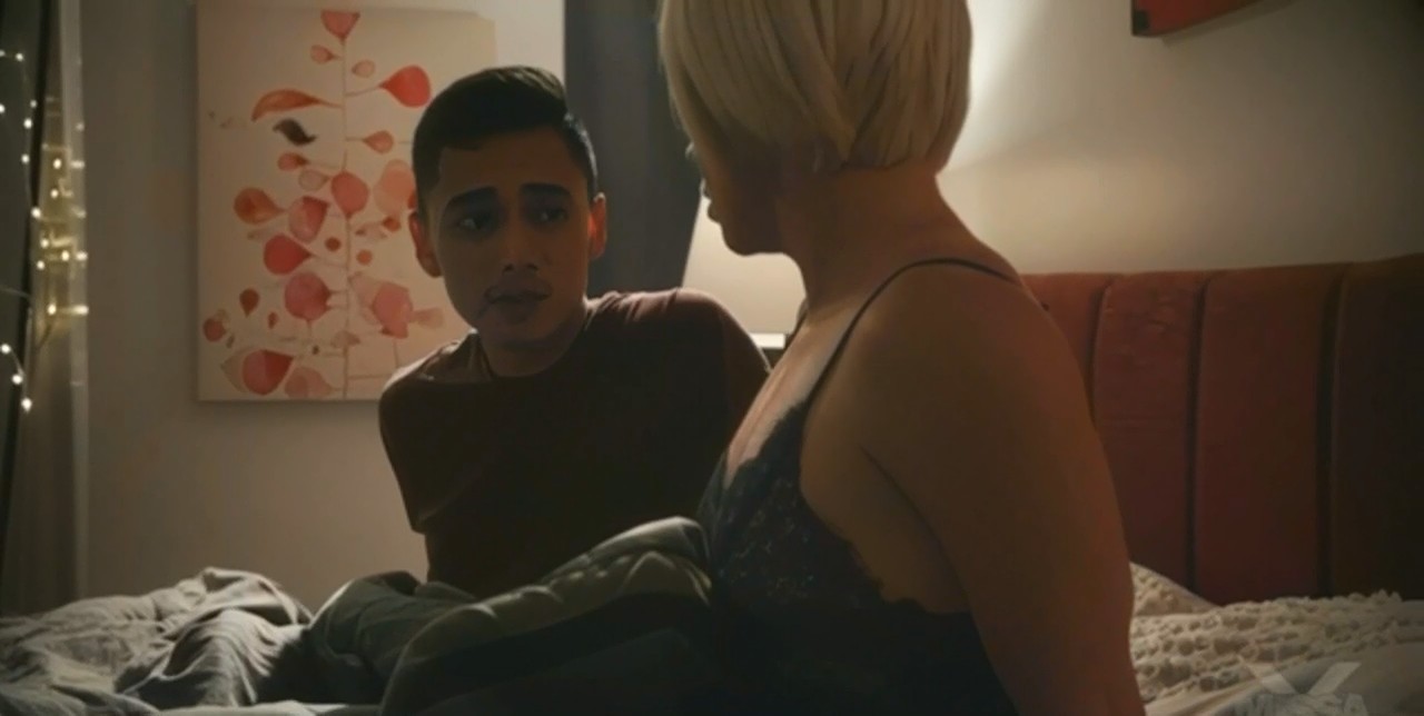 Мама вернулась домой с вечеринки без настроения, поэтому уже в обед пьет алкоголь. Она признается своему пасынку в разговоре, что ей не нравится сколько комплиментов он делает ее подругам, так как от этого просыпается ревность. Да, они действительно красивые женщины, но лучше бы он куда-нибудь уходил когда в доме появляется женская компания. Еще больше хозяйка удивилась свиданию мальчика с Самантой - бывшей стриптизершей 43-ех лет от роду. Мамочка названивала весь вечер, чем испортила встречу пасынка, поэтому пришла пора перед ним извиниться и рассказать подробней о своей ревности. Наслушавшись жалобных речей, парень ночью пришел в спальню светловолосой леди и просунул хрен между ее ляжек, занявшись петтингом. Возбуждение недолюбленной мамы выросло в считанные секунды и она решила все же трахнуться с маленьким негодником, выбравшим ее, а не взрослую подругу.